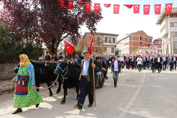 Sonrasında Ilgaz ilçe merkezinde Cumhuriyet Meydanında devam eden etkinliklerde kağnı arabası eşliğinde oluşturulan yürüyüş korteji Derbent Şehitlerinin kabirlerinin bulunduğu Şehitliğe yürüyüşe geçti.