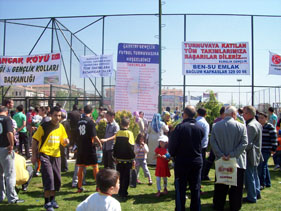 Fotoğraf 1: Özlü Gençlik ve Yaylakent Gençlik futbolcuları maç öncesi bir arada. Fotoğraf 2: Attığı 9 gol ile turnuvanın gol kralı Harun Arıcı. Fotoğraf 3: Hüyük Gençlik futbol takımı. Fotoğraf 4: Yaylakent Gençlik futbol takımı. Fotoğraf 5: Turnuvayı izlemeye gelenler. Fotoğraf 6: Çankırı Gençlik Derneği Başkanı Bayram Polat, dernek genel sekreteri Fatih Bayram ile birlikte...