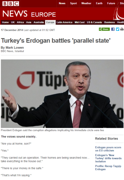 İngiliz basın kuruluşu BBC, dönemin Başbakanı Recep Tayyip Erdoğan ile oğlu Bilal Erdoğan arasında geçen ve ‘sıfırlama tapesi’ olarak bilinen ses kaydından bir bölümü internet sitesi üzerinden yayınladı.Mark Lowen imzasıyla yayınlanan haberde, Erdoğan ile oğlu Bilal arasında, operasyonun başladığı sabah geçtiği belirtilen konuşmaya yer verildi.