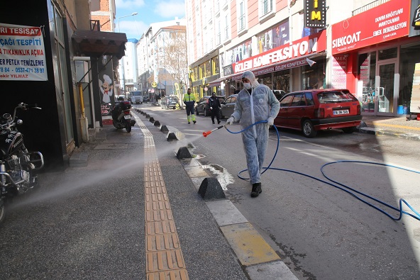 Zabıta Müdürlüğü ekipleri dezenfeksiyon işlemi öncesinde araçları çektirerek yol emniyeti sağlarken, İtfaiye Müdürlüğü'ne ait araçlar ve Belediyeye ait tüm tankerler; cadde, sokak ve kaldırımların ilaçlanarak yıkanmasında rol aldı. Büyük Camii ve çevre yollarından başlayan dezenfekte çalışmaları; Mektep Sokak, Hilmi Astarlıoğlu Sokak, Bedesten Sokak, İmaret Caddesi, Mehmet Emin Erişen Sokak, Necati Asım Uslu Caddesi, Alparaslan Türkeş Caddesi, Şehit Mehmet Ata Sokak, Namık Kemal Parıltı Caddesi, Elif Caddesi, Belediye çevresi, Atatürk Bulvarı, Fuar Yolu, Hoca Ahmet Yesevi Camii çevresi, Adnan Menderes Caddesi, Necip Fazıl Kısakürek Sokak, Tevfik Fikret Caddesi, Selahattin İnal Sokak, Manolya Sokak, Zeki Ömer Defne Sokak, Eşikli Aralık Sokak, Akkaya Sokak, Şehit Kadir Yıldırım Sokak, Şehit Pehlivan Tevfik Caddesi, Mehmet Kazım Arar Caddesi, Şehit Astsubay Yüksel Kaya Caddesi, Öztaş Sokak, Terminal Caddesi, Çarşamba Pazarı çevresinde gerçekleştirildi.