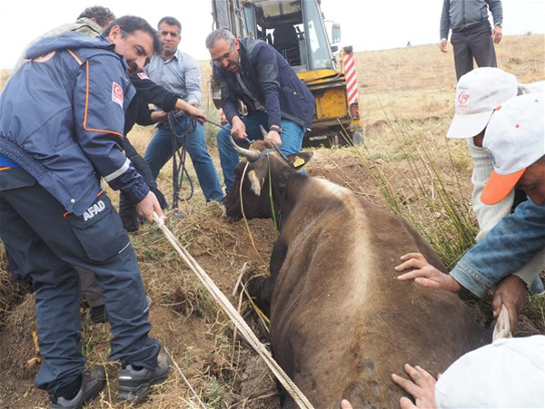 Çankırı'da kanala düşen ineği AFAD kurtardı