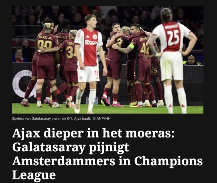 "Ajax, Şampiyonlar Ligi'nde Galatasaray'a da yenildi. Bu yenilgi, Amsterdamlılar için üst üste yedinci Avrupa yenilgisi oldu. Galatasaray, Amsterdam'da uzun zamandır görülmemiş bir kalite gösterisi sergiledi."