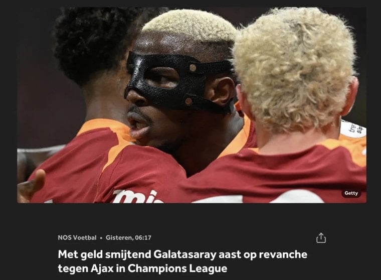 "Galatasaray, Şampiyonlar Ligi'nde Amsterdam ekibini ezdi. Osimhenli Galatasaray, Ajax'ı bataklığa daha çok itti. Victor Osimhen, üç gol atarak golcülük konusundaki şöhretini sonuna kadar hak ettiğini gösterdi."